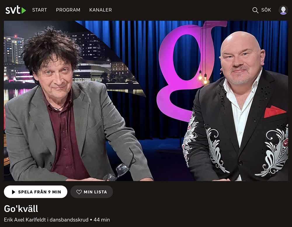 Den 28 oktober handlade det om Erik Axel Karlfeldt i det populära SVT-programmet Gokväll. Sångaren Peter Larsson och låtskrivaren Sulo Karlsson berättade om hur Nobelpristagaren Erik Axel Karlfeldts dikter tog sig in i dansbandet Larz Kristerz repertoar.