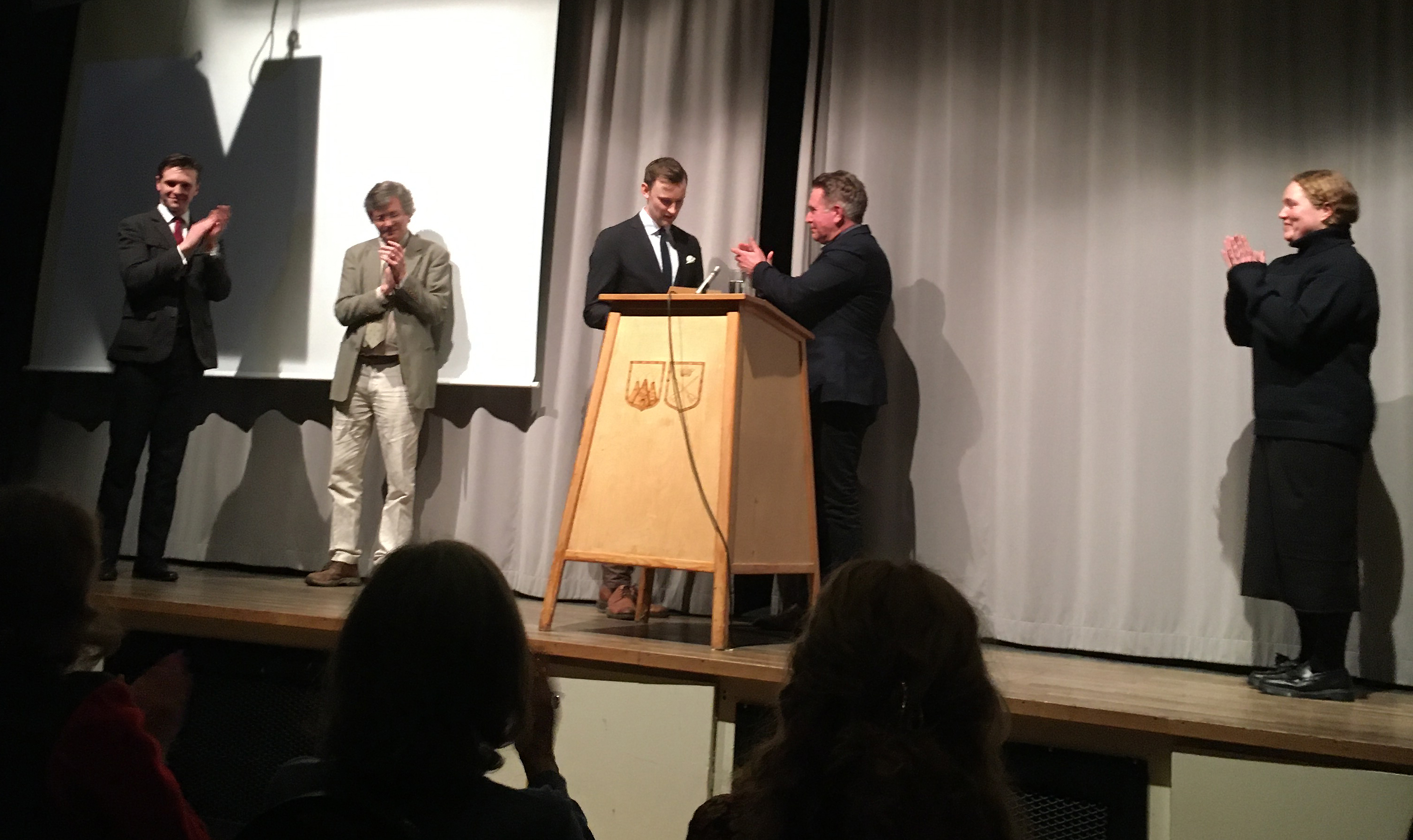 Karlfeldt-samfundet har också en högskolepristävling, och pristagarna (Axel Hedengren, Edvard Ek och Milla Nenonen) kallades fram för att mottaga sina diplom ur ordföranden Johan Tysks hand.