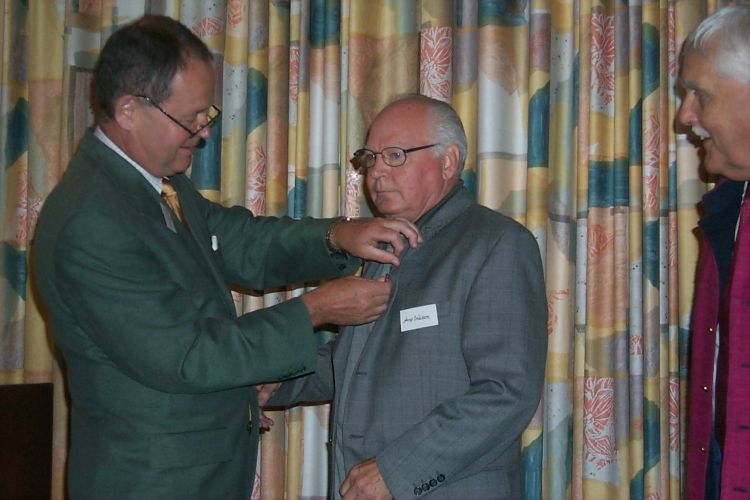 Arne Eriksson mottar Karlfeldtmedaljen av Christer ÅsArne Eriksson var ledamot av Karlfeldtsamfundets styrelse 1991-2002 och klubbmästare 1996-2002. I denna funktion blev han en värdefull länk mellan samfundet och Karlfeldtföreningen i Folkare, där han var styrelseledamot 1986-2007 och vice ordförande från 1988. Arne belönades med Karl feldtmedaljen 2002 och fick ta emot Avesta kommuns kulturpris Årets Fridolin 2004.